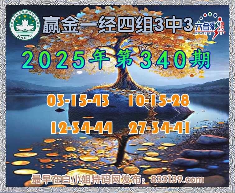 341期: 『赢金一经』 四组3中3