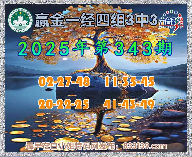 343期: 『赢金一经』 四组3中3